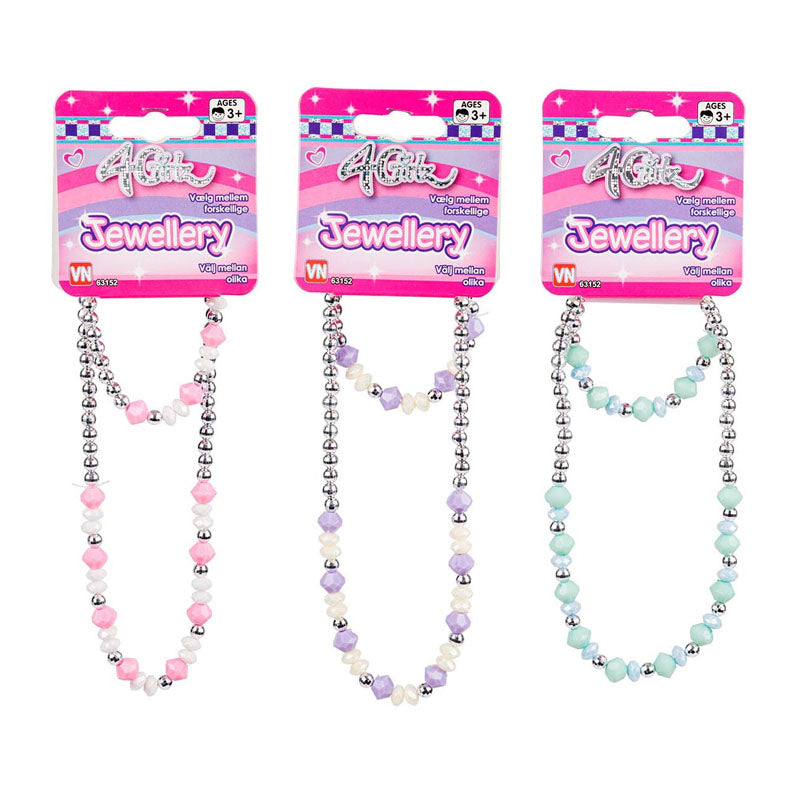 4-girlz sæt med armbånd og halskæde er det perfekte accessories-kit til små fashionistas! Hvert sæt leveres assorteret og indeholder en matchende halskæde og armbånd i forskellige farver og designs, som gør det sjovt at skabe unikke looks hver dag. Smykkerne er designet med justerbare længder, så de passer til enhver størrelse og stil.
