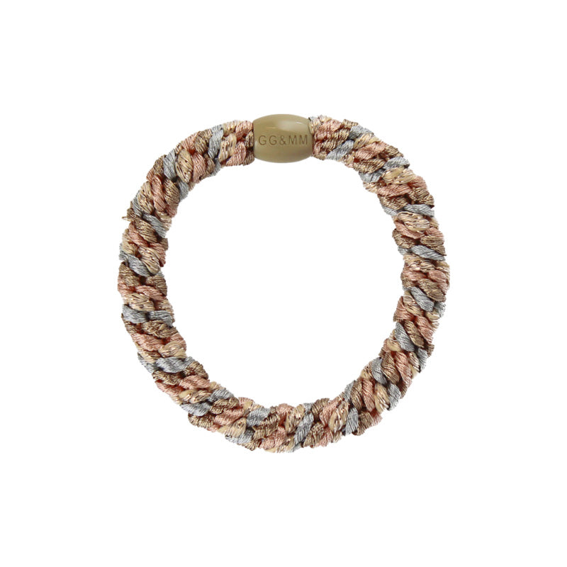 Den fineste glimmer elastik i farverne støvet rosa & glimmerblå fra By Stær. Elastikken er lavet i høj kvalitet så den kan tåle det meste, og i øvrigt er materialet skånsomt for håret, så den bliver siddende hele dagen uden at rive hår med ud igen.