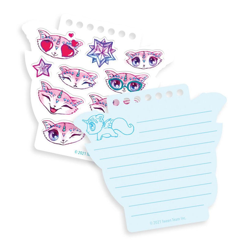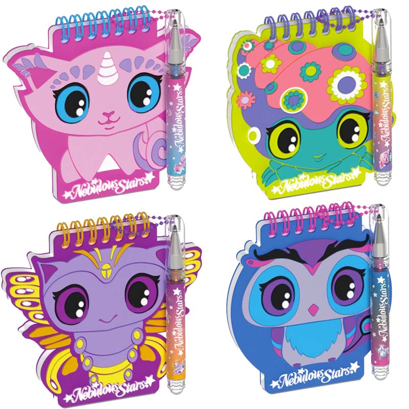 Sød og praktisk lille notesblog, med søde motiver. Der medfølger en flot metallisk kuglepen med kæde, og farverige klistermærker, så kreativiteten kan slippes løs! Notesbøgerne har 4 motiver, og leveres assorteret.